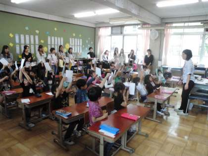 1年生は,「自己紹介をしよう」というテーマで学習していました。