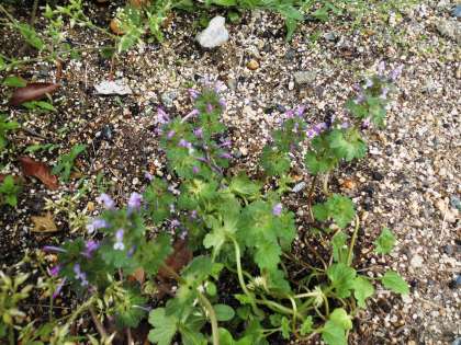 今回の花もよく見る機会の多い花です。葉の付き方が段々になっている様子から「三階草 サンガイグサ」の別名がある「ホトケノザ」です。花をよく観察すると,「シソ」の花に似ています。調べてみるとやはりシソ科の野花でした。