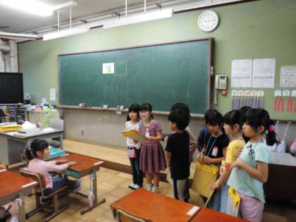 校長室では、校長先生から下鳥羽小学校の歴史なども教わりました。