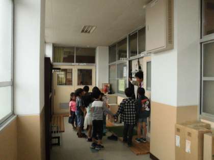 最初に1年生の教室へ、お迎えに行きました。同じグループの1年生の名前をしっかり呼んで、お兄さん・お姉さんとしての活動スタート!