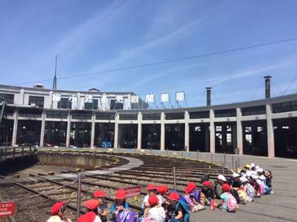 子どもたちは,鉄道博物館に到着し,館内を見学しているようです。