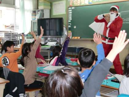 そのあと、給食室にも表れて、2年生や3年生の子どもたちもサンタさんからプレゼントもらいました。