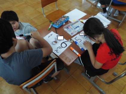 食事係は,テーブルの上に置く班の札を作っていました!!