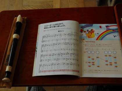 先生の歌声に合わせて,作った旋律をリコーダーで奏でていました☆