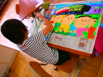 11日(金)にみんなで行った遠足の絵を描きました。かっこいいSLに乗った絵,お弁当を食べている絵,思い出に残ったところをいきいきと描いていました。