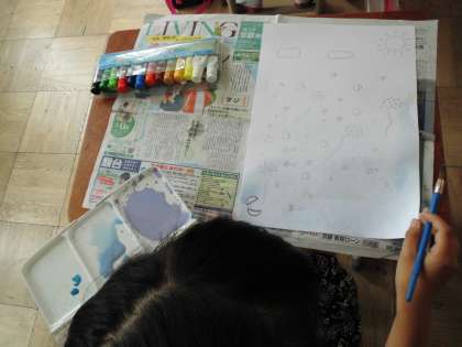 想ぞうを広げながら,自由に表現し,絵の具で着色しました☆