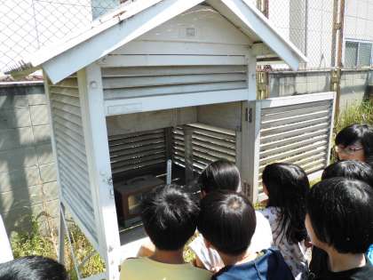 百葉箱を使って1日の気温を測り・記録し,晴れの日と曇りの日とでは気温の変化にどのような違いがあるのかをさぐりました!!