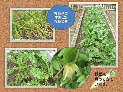 飼育小屋には,今年の干支であるウサギたちが,少し寒そうに見えましたが,それでも元気よく動いていました。そして,花壇には花が,畑には野菜が,子どもたちが一生懸命育てているかいあって,寒さに負けずに大きく育ってきています。登校したら,みんなも,この広場の様子を見に来てください、