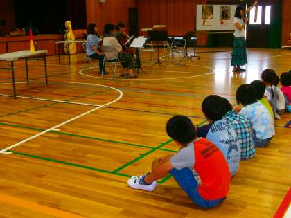 群馬市交響楽団のオーケストラの事前学習をしました。たくさんの楽器を見てびっくり!終わってから,「さわってみたいなぁ。」と話していたひまわりのみんなでした。