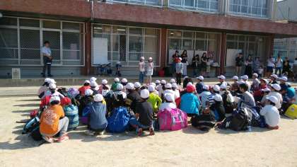 今日から3日間,4年生はみさきの家で校外学習です。とてもよい天候の中,全員元気に登校し出発式を行いました。たくさんの思い出をつくってきてくれるでしょう。