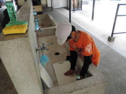中には,裏方にまわり,使い終わったまな板や包丁を自ら洗う姿もありました。