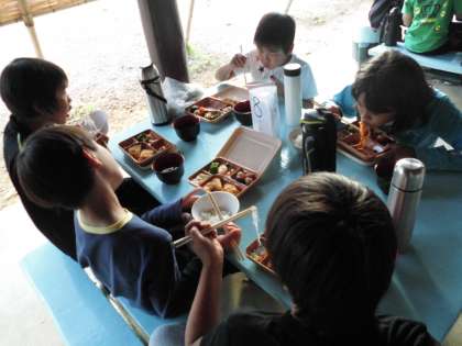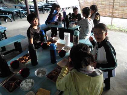 みんな「キャンプファイヤー」に備えて,ごはんのおかわりもたくさんしていました!!