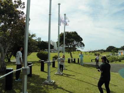 活動終了を意味する活動旗おろしをしたり,所員さんへの感謝の気持ちを伝えたりしました☆きっと「もう少しここで活動したいな〜」なんて感じた人もいたことでしょう!