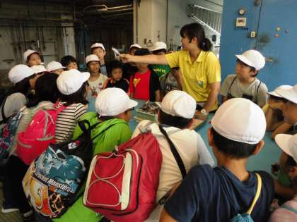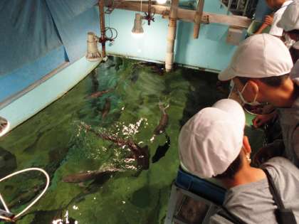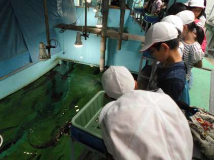 回遊水槽をいつもはお客として見ていた子どもたち!