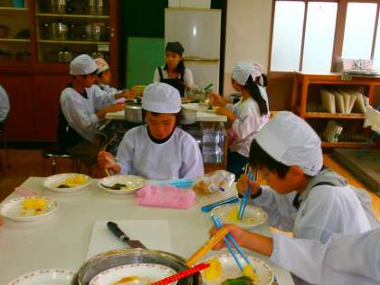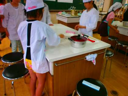 5年生は,今年度初めての調理実習をしました。メニューは,ゆでいもとほうれんそうのおひたし!グループの友だちと力を合わせてとってもおいしくできました。