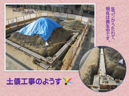 土俵づくりの進捗状況をお伝えします。今は,コンクリートの養生中です。この後,土を埋め戻してならした後に,鉄骨を組み立てることになります。