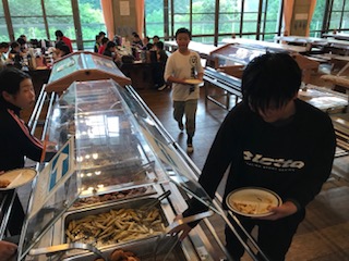 今日の人気メニューは、ハンバーグ、串カツ、ポテトサラダだったようです!デザートにオレンジゼリーもありました。みんなバランスを考えてサラダなどの野菜もとっています。何回もおかわりする人もいましたよ☆