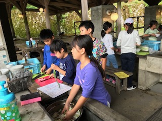 野外炊事では,みんなで協力・分担し,「鳥すき焼き風煮」を作りました☆