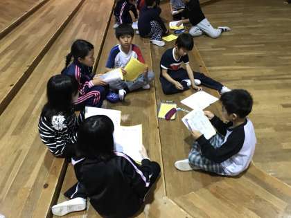 花背山の家での夜もこれが最後です。みんなでしっかりふり返りをし,明日に備えます。