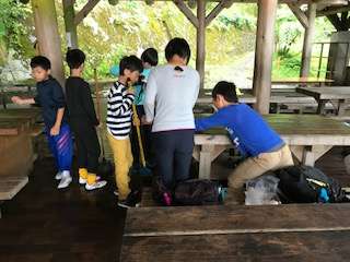 使った場所をきた時よりも美しく清掃し、退所のじゅんびです。