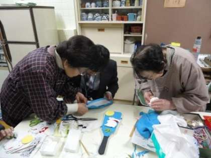 1月29日(土)の土曜学習に向けて『羽子板講習会』が24日(月)の夕方行われました。地域女性会の村瀬さんと松井さんが先生になっていただき,羽子板の作り方を教わりました。いつも教壇に立っている教員が,今日は生徒です。手取,足取り大変丁寧に作り方を教わりました。今度の土曜学習が楽しみですね。