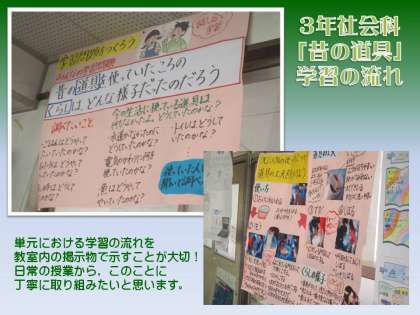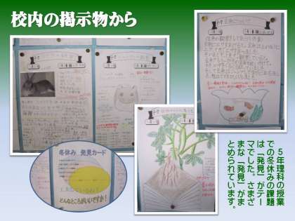 校内の掲示物は,子どもたちの学びにかかわるものがほとんどです。指導する教師の意図やねらいが明確に見えるものを選んでいくつか紹介します。
