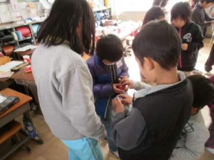 お兄さん・お姉さんとして,しっかりと教室まで1年生を連れて行ってあげたり,丁寧にこまの回し方を教えてあげたりと,とても頼もしい姿がたくさん見られました。