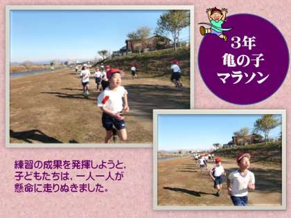本日は,9時より3年生が亀の子マラソンを行いました。またいっそう寒さを増した朝に,子どもたちの白い息がはずみます。最後まで頑張って走りました。