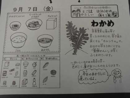 今日の注目は,あかだしに入っている「わかめ」です。