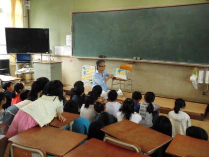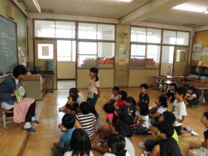 今朝は読み聞かせボランティアの方に、『きつねみちは天のみち』『お月さまってどんなあじ?』の2冊を読んでいただきました。お月さまの味について、どんな味だと思う?と質問されると「手羽先の味。」「ごはんの味。」など色々な味を想像しながら聞いていたことを伝えていました。
