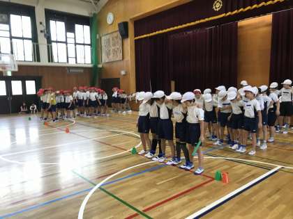 今日の練習では,5人組まで人数を増やしました。また,リレー方式で試合をしたところ,かなり速く走ることができている組もありました。