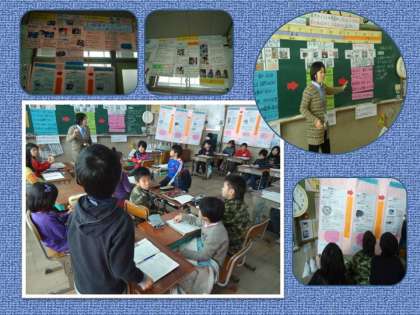 3年生は,9日(水)の研究授業に向けて,事前研究に取り組んでいます。同じ指導案のもとに,異なる学級で授業をしてみて,あとで担任が一緒に検討を加えるものです。この単元は,先日,地域女性会の皆さんに指導して頂いた体験的活動の「洗濯板で洗濯をする」を含むものです。