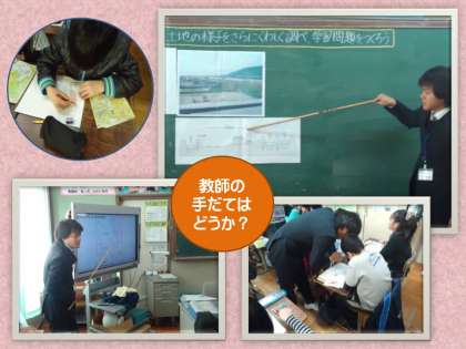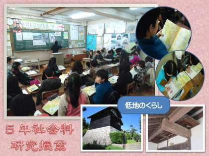 「低地のくらし」を岐阜県海津市と校区・下鳥羽との比較から考えようとする授業の進め方には,これまでの実践にない,斬新な視点があるものと思っています。5年のすべての学級で進めている,この授業の今後の展開に期待しています。