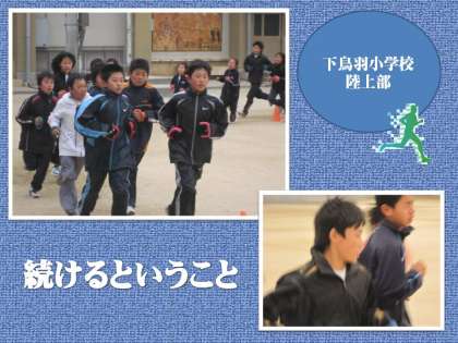 校長室にいると,運動場からザッザッザッという足音が聞こえてきました。陸上部の子どもたちが走っています。みんなで一緒に走っているのです。