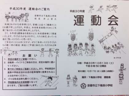 いよいよ明日,13日(土)は下鳥羽小学校「運動会」!!