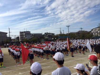 開会式では,「開会の言葉」「選手宣誓」「ラジオ体操」など,5・6年生が立派にリードする姿がありました!!