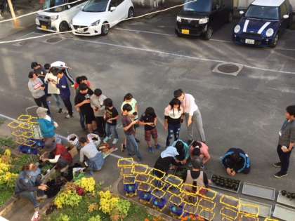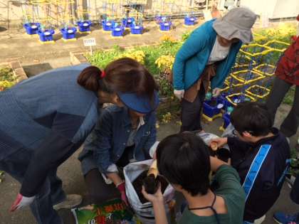 園芸委員会は,ボランティアの方々の指導のもとビオラのピット苗を黒いポットに移植しました☆