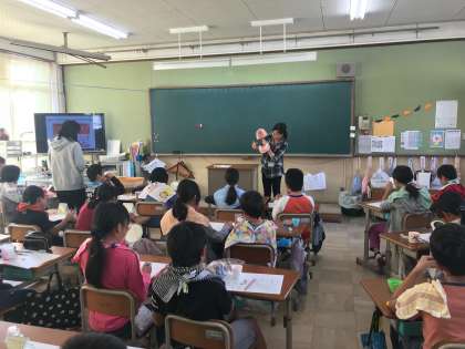 本日、4年生は養護教諭から歯みがき指導の授業を受けていました。