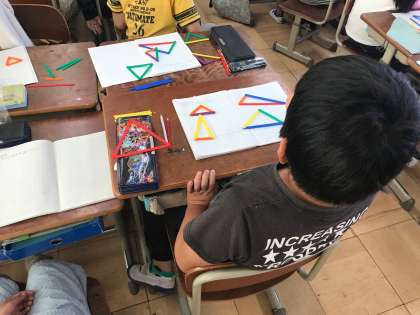 模型を使っていろいろな三角形を作っていました。