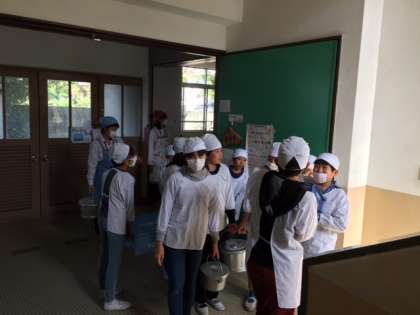 6年生の給食当番,きちっと並んで取りに行っていました☆