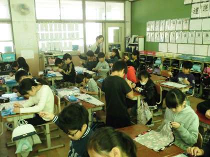 裁縫道具を使って、ランチョンマット作りに挑戦しました。