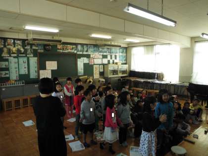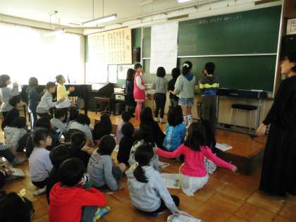 2年生は,「かぼちゃ」という曲を合唱したり,打楽器を使って合奏したりしていました。