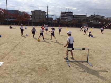2年生は体育の学習で「ボール蹴り」ゲームを楽しんでいました。