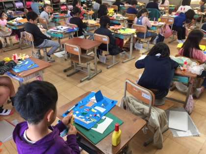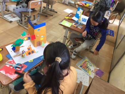 それぞれが創造力をいかしておもいおもいの作品になっていました。