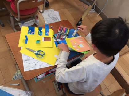 2年生はのりやはさみ・カッターなどを器用に使いこなして作品を作っていました☆
