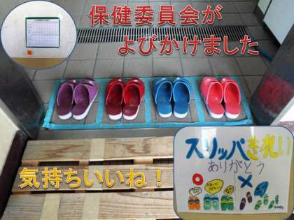 高学年の保健委員会でトイレのスリッパを気持ちよく使おうと全校に呼びかけてくれました。それに応えて全校のみんなが気をつけて,次に使う人のことを考えてくれるようになっていました。毎日,そうありたいですね。「いいぞ しもとばっ子!!」