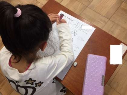 算数の「かたちづくり」の復習や「カタカナ」の復習をしていました!!