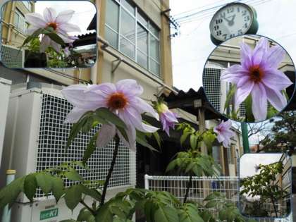 中庭の風力発電跡地に「皇帝ダリア(木立ダリア)」を植えました。植えた時期が遅く,心配しましたが,先日よりピンク色のきれいな花を咲かせています。
