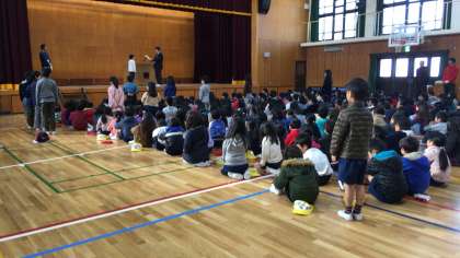 子どもたちは校長先生のお話や5年生、6年生の