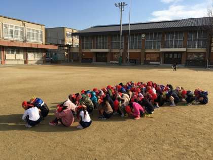 運動場の真ん中でダンゴ虫になって次の指示を待っていました。